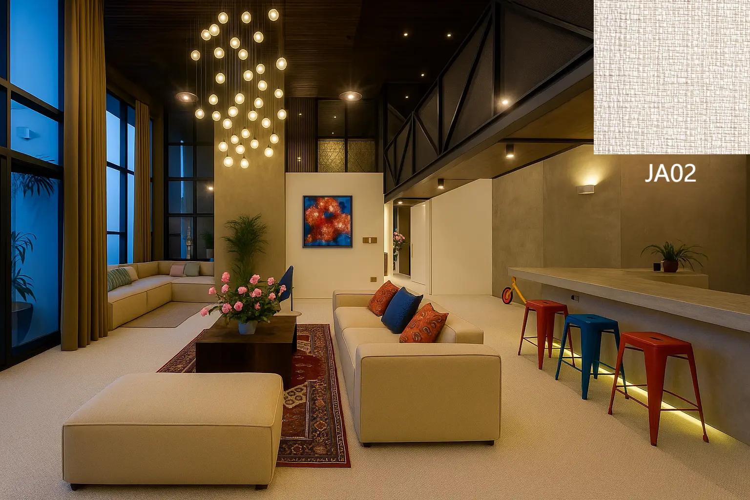 Seria Quiet charakteryzuje się klasycznym, dwukolorowym żakardowym wzorem w eleganckich, spokojnych barwach. Tworzy niepowtarzalną artystyczną atmosferę, zapewniając poczucie spokoju i elegancji wśród tętniącego życiem miasta.